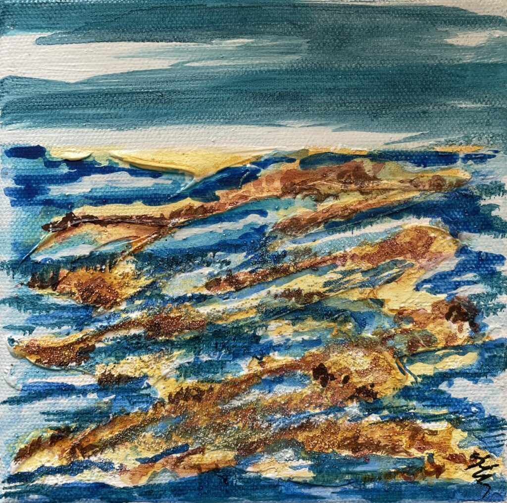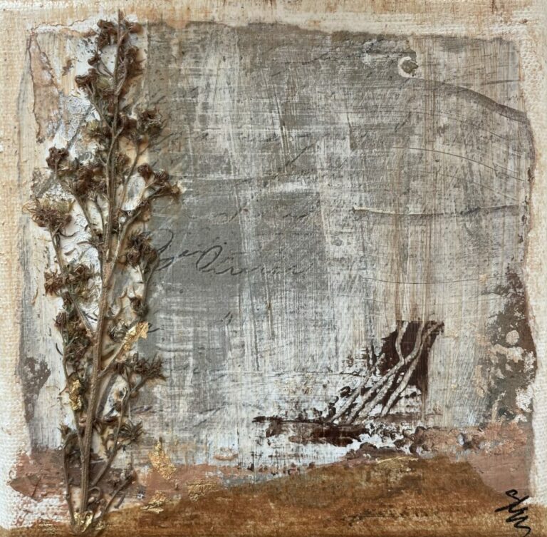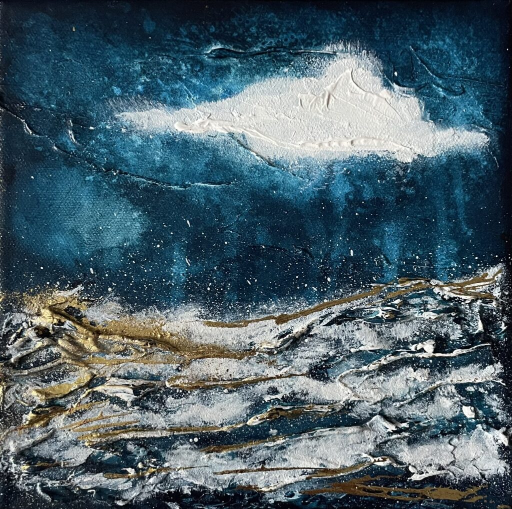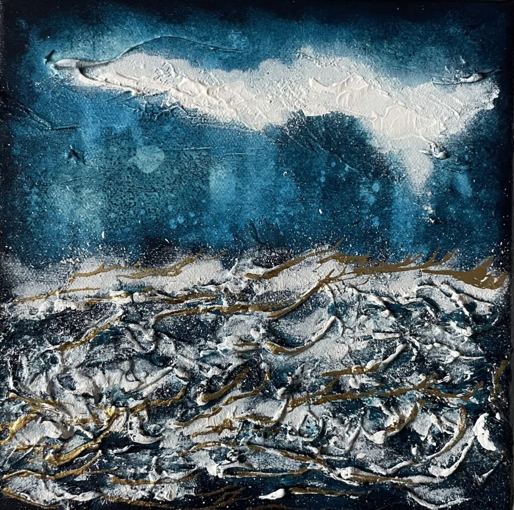 Pour cet événement, j’ai préparé une collection inédite, appelée « Les P’tites créas » spécialement imaginée pour l’occasion. Ces créations s’éloignent un peu de ma démarche habituelle… tout en gardant mon univers en filigrane. Une autre façon de me découvrir. Il peut y avoir une légère différence de couleur par rapport à la réalité, due à la prise photographique. Les p’tites créas sont réalisées en peinture acrylique, réhaussées de feuilles d’or. Les châssis sont en bois, et munis d’une attache pour être prêt à poser sur votre mur.